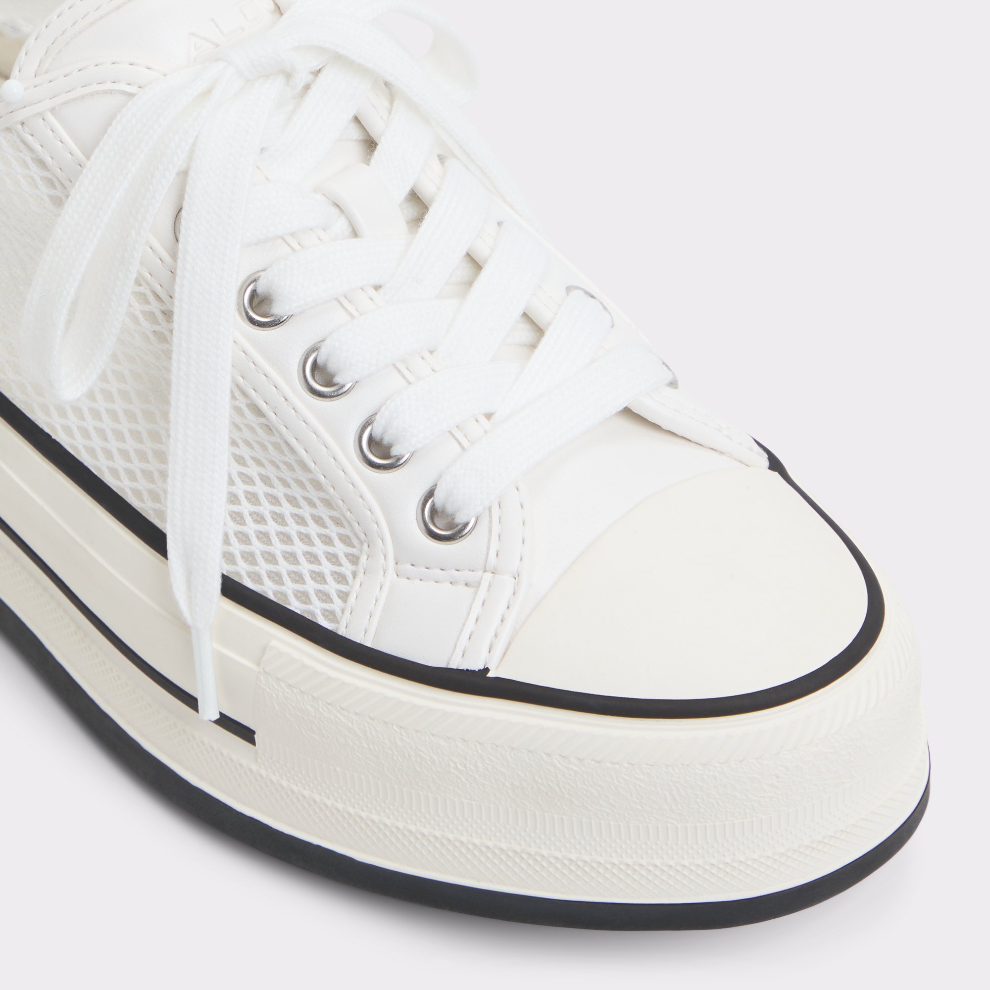 White Synthetic Mesh Platform Low Top Sneaker | Rayes – SOLZ8117